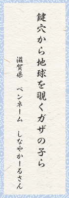 住んでいるこの世界が全ての世界とガザの子ら。鍵穴から見える世界はおとぎの世界か。