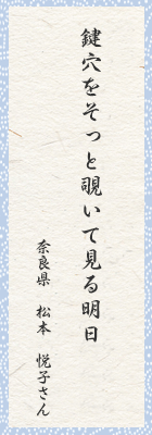 この鍵穴から果たして明日が見えるのだろうか。今日を精一杯生きてこその明日が。