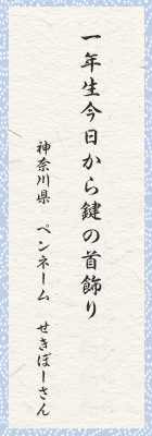 初めて親の腕から抜けた一年生。首には鍵がきらりと無事の帰りを待つ家が。