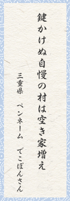 人間不信の数と鍵の数が同じとは。田舎では鍵など持ったこともないのに。