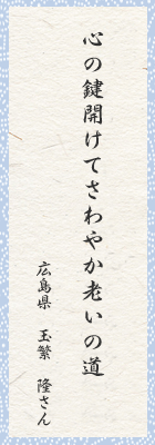 こうなれば連れ合いに何もかも腹蔵なくの老いの道。時に叱られ時に褒められ。