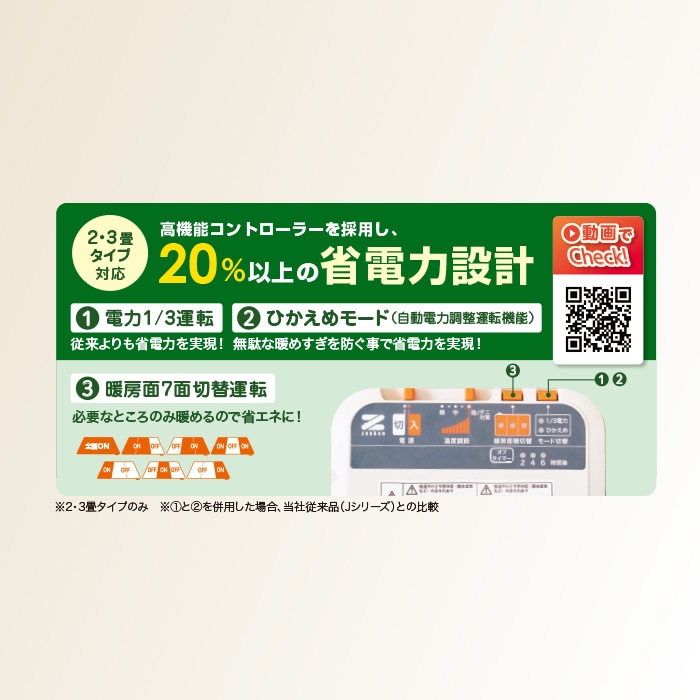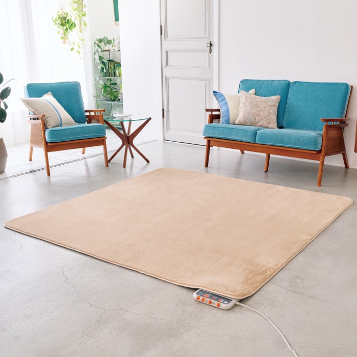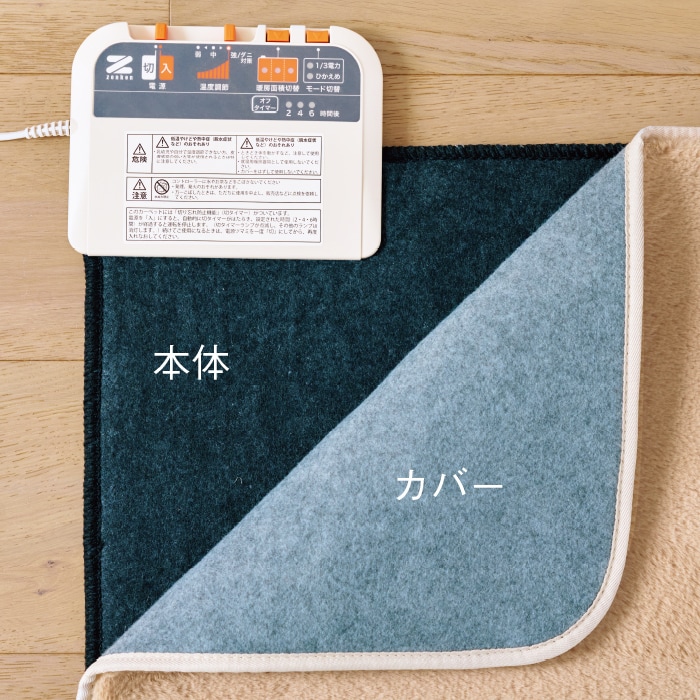 ※本体のみをお買い求めいただいた場合は、必ず市販のカーペット用カバーを掛けてご使用ください。(低温やけどをする恐れがあります。) ※熱に弱い床材や敷物が変色することがありますので、時々敷きなおして床材の変色に注意してください。 ※カーペットの上に机やこたつを置く場合は付属の取扱説明書を必ずご確認いただき使用方法をお守りください。
