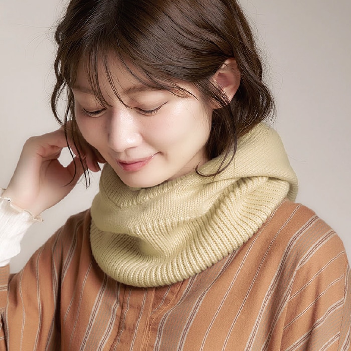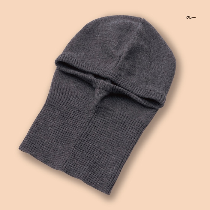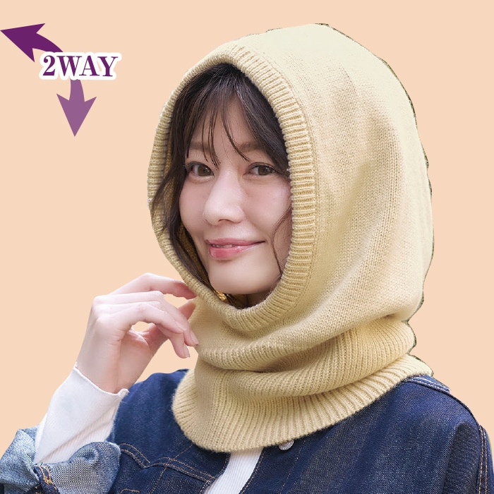 フードをかぶって首から耳まですっぽりあたたか。フードを外してネックウォーマーに。ネック部分を内側に折り込んで口元あたたか。
