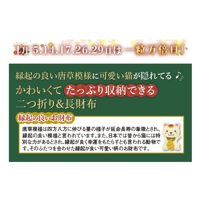 内側に可愛い猫と縁起の良い唐草模様