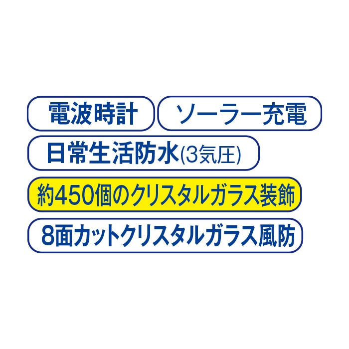 ◎仕様:日本製ソーラーパネル、中国製ムーブメント、光発電機能、電波受信機能、月差/±30秒(電波非受信時)、3気圧防水、品質保証書付、化粧箱付