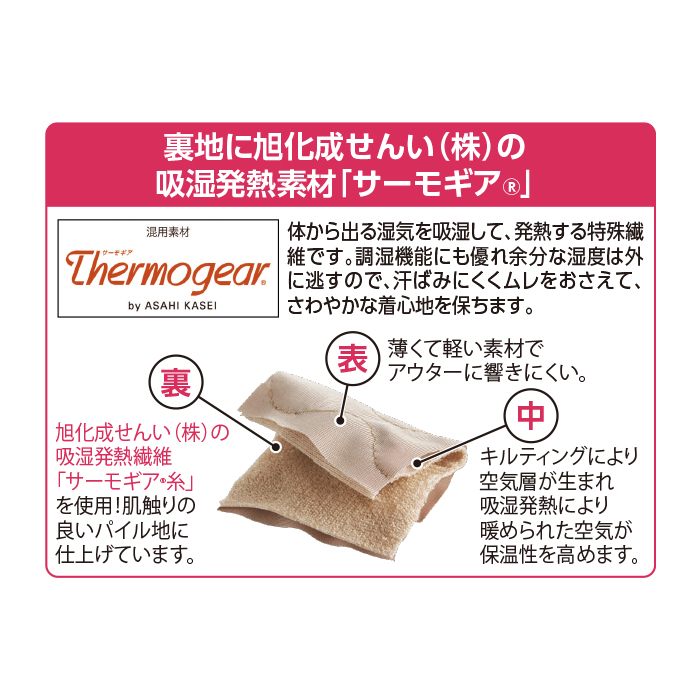 インナーウエアとして1枚着るだけで、何枚も重ね着しているような暖かさ!