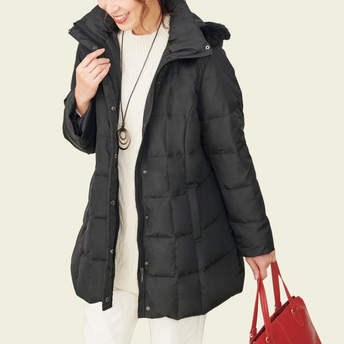 ◎素材:ポリエステル100%、充_物/ダウン80%、フェザー20%、中わた/ポリエステル100%、ファー/毛皮(ラビット)、裏地/ポリエステル100%