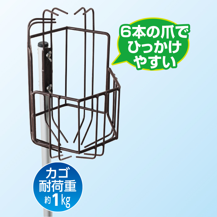 商品の仕様 ◎サイズ(約cm):幅16×奥行18×長さ116.5〜268 ◎重量:約730g ◎耐荷重:約1kg ◎材質:バスケット・スチール(ポリエチレンコーティング)伸縮パイプ・アルミニウム合金・ポリプロピレン・ポリエチレン ◎本体:日本製、伸縮パイプ・中国製 10110565