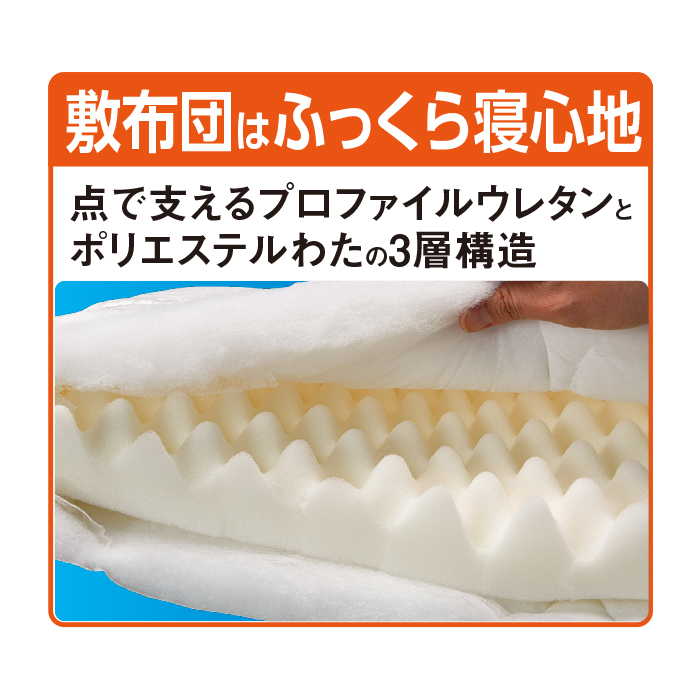 《敷布団は点で支えるプロファイルウレタン》
