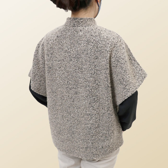 ゆったりデザインで重ね着しやすく、冷えやすい肩周りをしっかり包み込んでくれます。