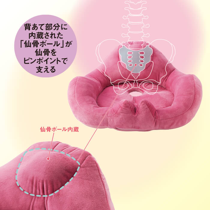 背あて部分に内蔵された「仙骨ボール」が仙骨をピンポイントで支える