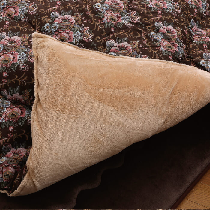 裏面に毛布をあしらった暖か仕様の日本製こたつ布団。