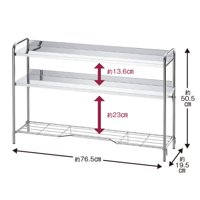 ◎材質:フレーム・網棚/スチール(クロムメッキ)、棚板/ステンレス鋼