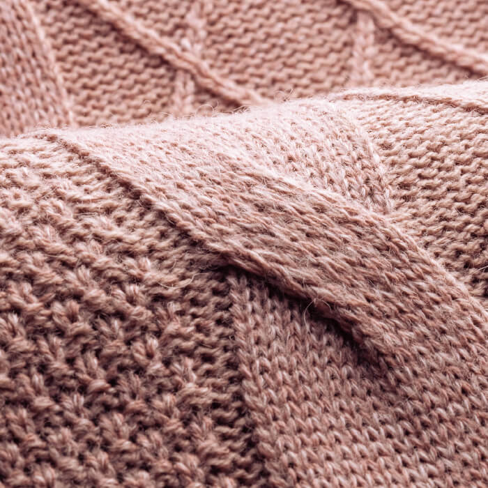 凝った編み地とニュアンスピンクでベーシックなカーディガンを格上げ。
