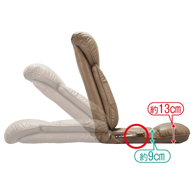 商品の仕様 ◎サイズ(約cm):幅55×奥行64~125×高さ19~74×座面高さ9(前部13) ◎材質:表面/スーパーソフトレザー(PU)、後面/合成皮革(PVC)・ポリエステル、中身/ウレタン・スチール、レバー/天然木 ◎重量:約7kg ◎カラー:茶、黒、ワイン ◎日本製 10038440