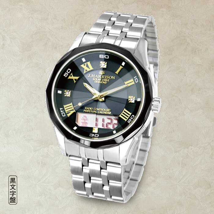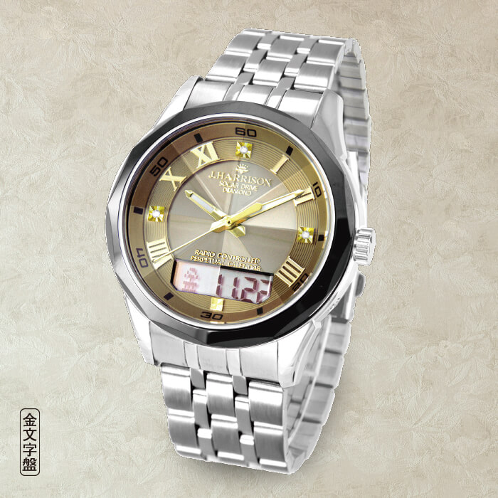 ◎仕様:日本製ソーラーパネル、中国製ムーブメント、光発電機能、電波受信機能、月差/±30秒(電波非受信時)、3気圧防水、品質保証書付、化粧箱付