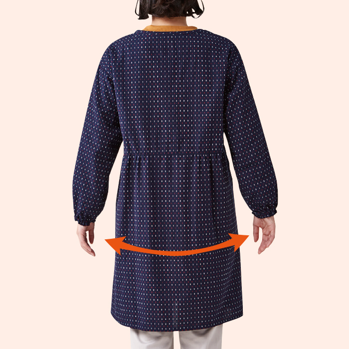 綿100%の久留米織りかっぽう着楽に着られて機能的