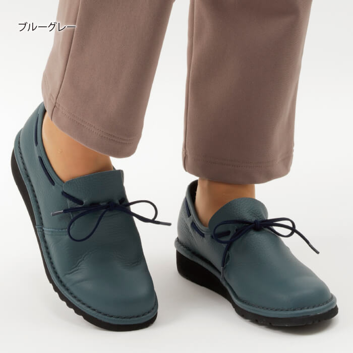 *ゆったり楽! 優しく包み込まれるような履き心地* 履き心地の良い柔らかい牛革を使用。アウトステッチ製法と足なりの型(オブリーク)を使うことで足に圧迫感がなく、幅広、甲高の方におすすめ。