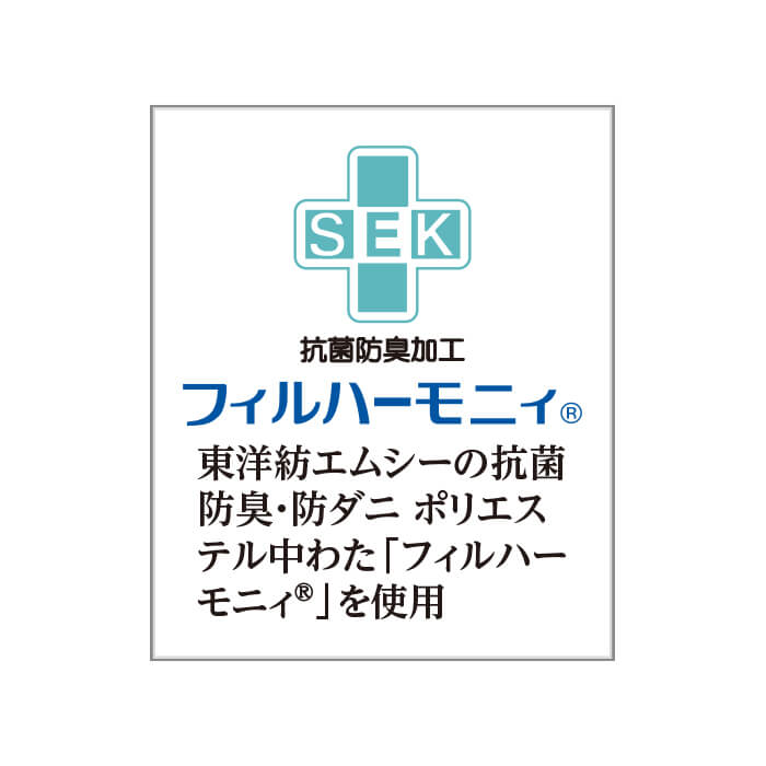 ◎素材:表/フランネル・ポリエステル100%、裏/ポリエステル100%、上層部/東洋紡フィルハーモニィ®(ポリエステル100%)、固綿/ポリエステル100%