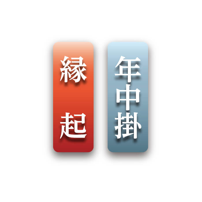 四季の花々を描いた掛軸です。梅は「産め」、菖蒲は「勝負」、牡丹は「富貴花」、菊は「嬉久」、南天は「難を転じる」と縁起の良い物ばかりです。