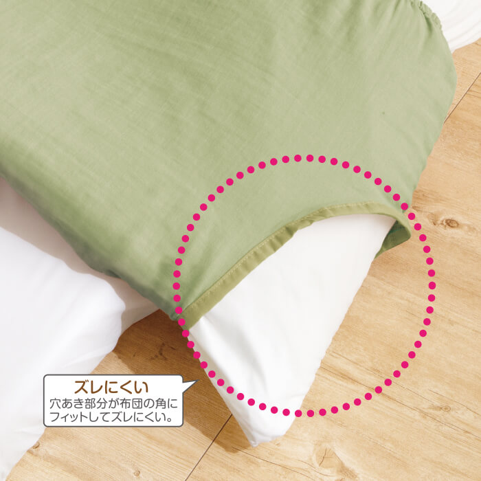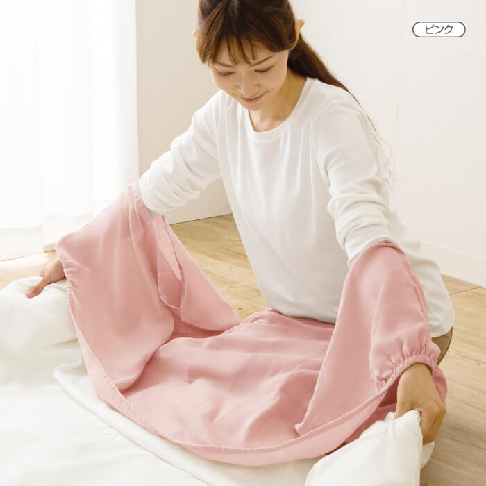 布団カバーを丸ごと洗うのは大変。でも一番汚れやすい衿元だけにカバーを掛ければ手軽に交換できて洗濯も簡単。両脇のゴムでしっかりフィットするから布団にかぶせるだけでOK。