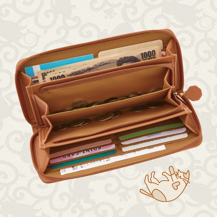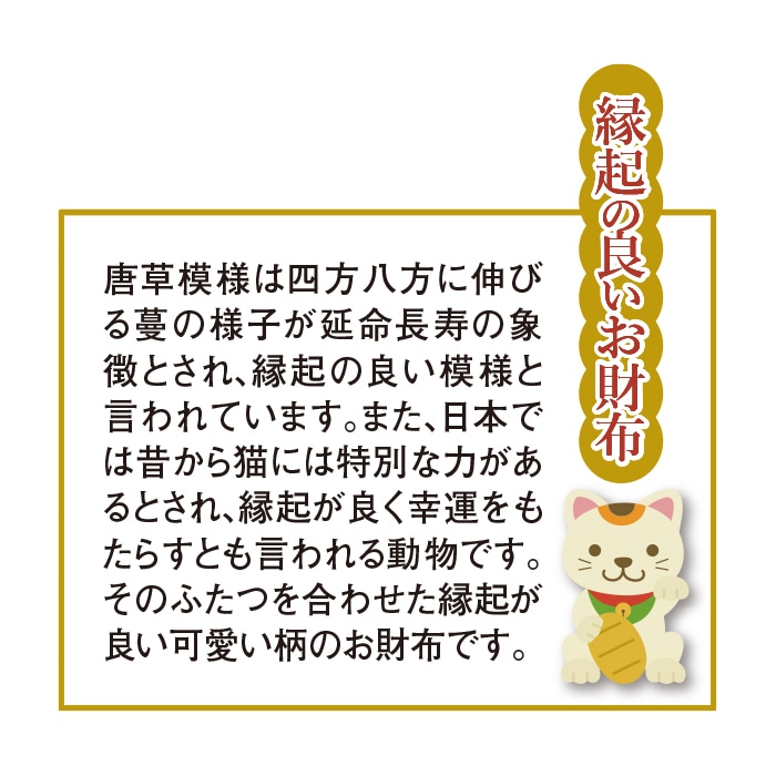 縁起の良い唐草模様に可愛い猫が隠れてる♪ かわいくてたっぷり収納できる 長財布