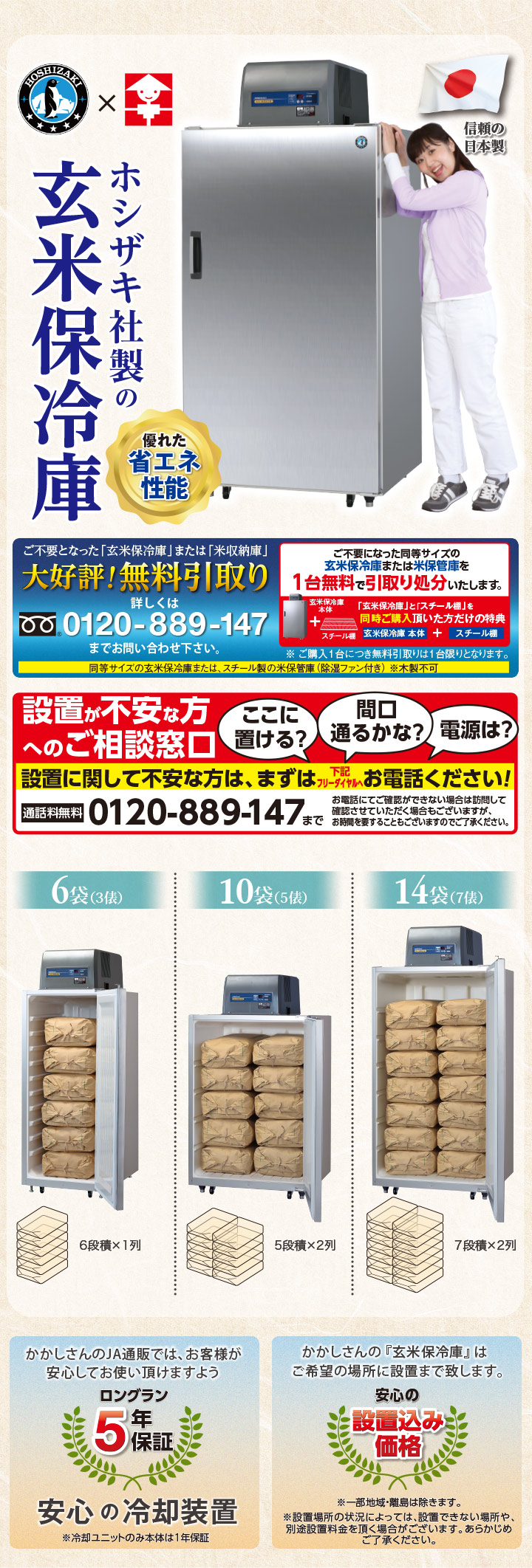 ご不要になった同等サイズの玄米保冷庫または米保管庫を致します。