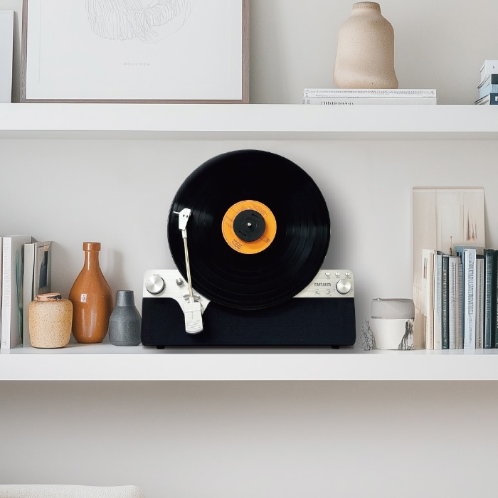 レトロな音と現代の快適さが融合した縦型レコードプレイヤー♪