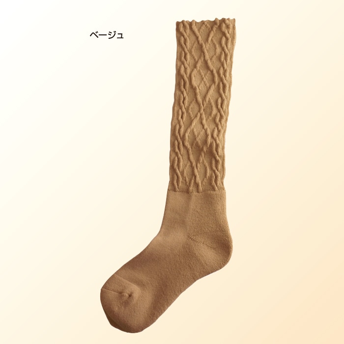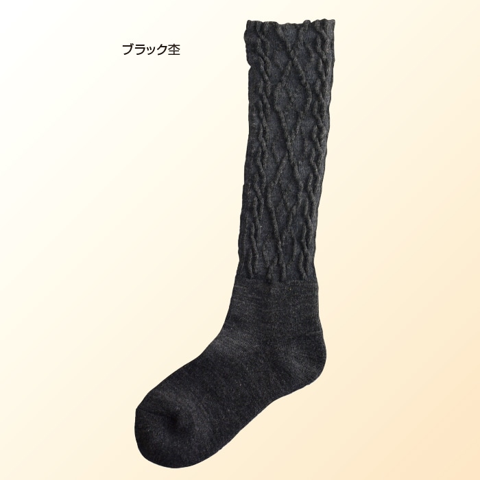 歩行も妨げにくいかわいいケーブル編みの2重ソックス