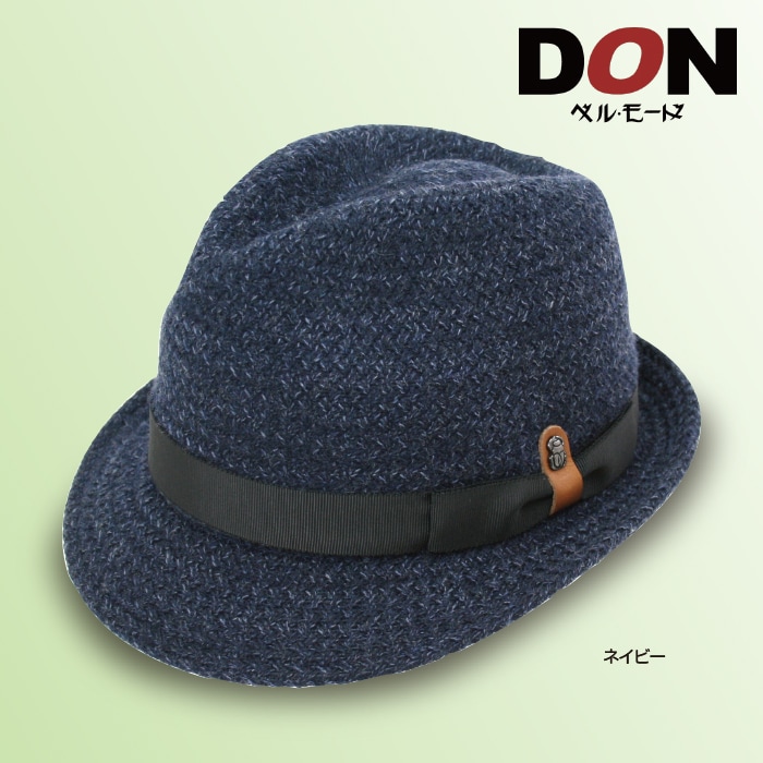 ウォッシャブルウールを使用して石目編みで編み上げたベーシックな中折れハット。