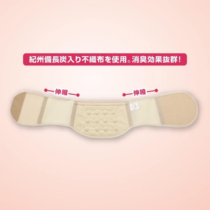 ◎素材:腰部分/綿、ポリエステル(備長炭不織布)、磁石12個(フェライト100mT)、お腹部分/ポリエステル、ベルト部分/ナイロン、ポリウレタン、メッシュ部分/ポリエステル