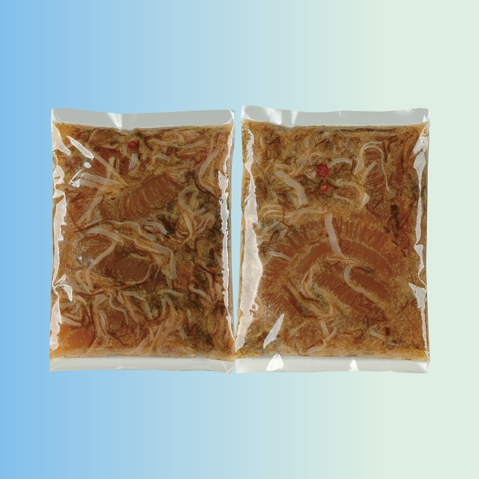 厳選した大ぶり数の子と北海道産真昆布を使用。数の子は調味、ダシを吸い込みやすく、適度な歯ごたえがあるものを選びました。昆布とスルメと共に秘伝のタレに漬け込み内部まで旨味が染み入っています。