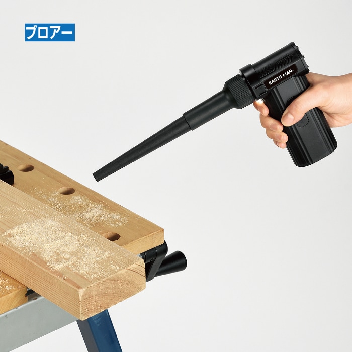 作業後の木くずや衣類についたゴミなどの吹き飛ばしから空気入れまで便利な充電式ミニエアダスター