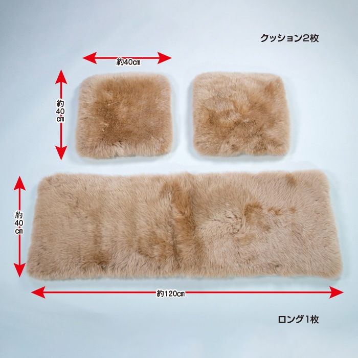 商品の仕様 ◎サイズ(約cm):[クッション]40×40 [ロング]40×120 ◎材質:表面/羊毛皮100%、裏面/ポリエステル100%、中材/ポリエステル綿、毛足長/約60mm ◎中国製 10130135
