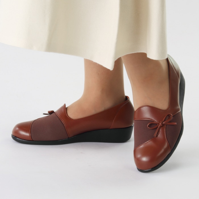 《ゆったりした履き心地&エレガントなデザインが両立!》大人かわいいサイドリボンのタウンシューズ