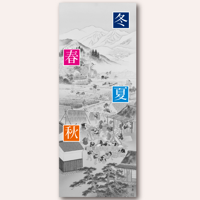 五穀豊穣・豊作を願い移りゆく一年の風景を描いた名幅。