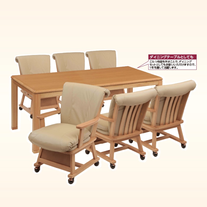 【6人掛けセット(こたつ・こたつ布団・イス6脚)】