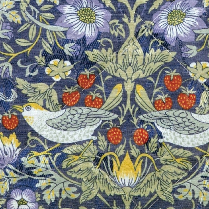 《いちご泥棒》ウイリアム・モリスの代表柄「いちご泥棒」を厚手のジャガード生地にプリント表現した落ち着きのある美しいデザインです。