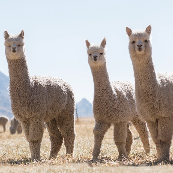 保温性に優た天然素材《アンデスの宝石・アルパカ素材》アンデスの宝石と称されるほど希少性の高いアルパカの毛は中空構造で、軽く、保温性に優れ、シルクのような滑らかさが人気です。