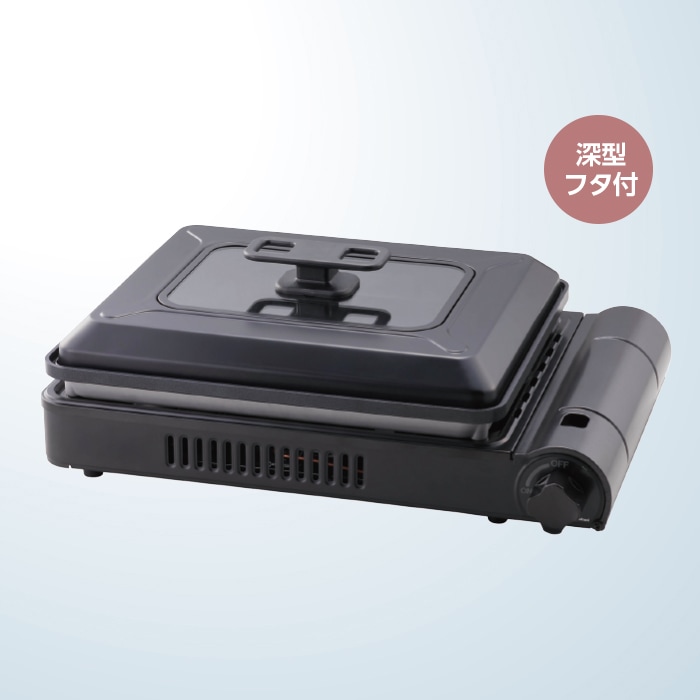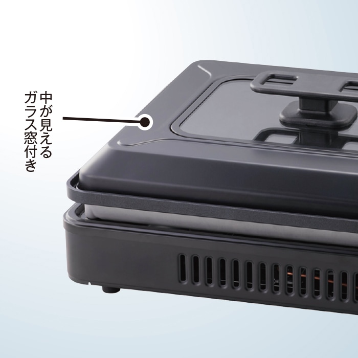 ◎材質:本体・汁受け/鋼板、プレート/アルミ(フッ素加工)、ごとく/耐熱アルミダイキャスト、つまみ/ABS樹脂、ふた/鋼板・ガラス・フェノール樹脂