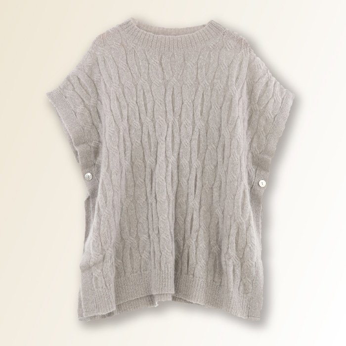 さっと羽織るだけでお洒落に決まる、きれいなケーブル柄が落ち着いた女性を演出するポンチョ。