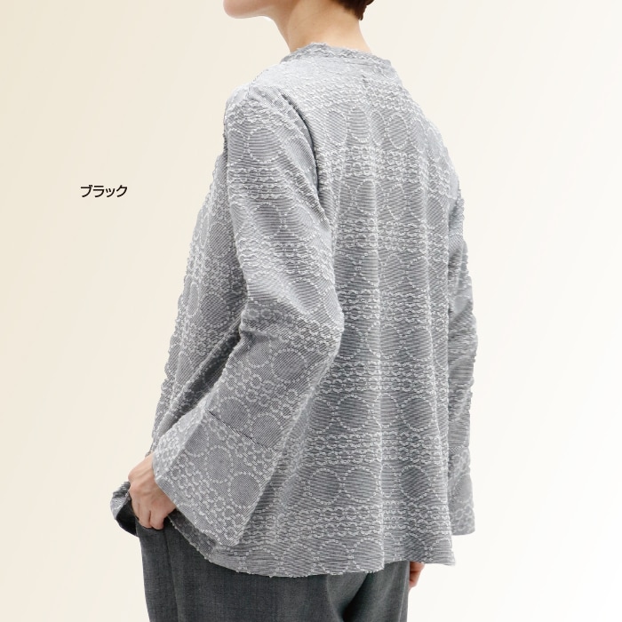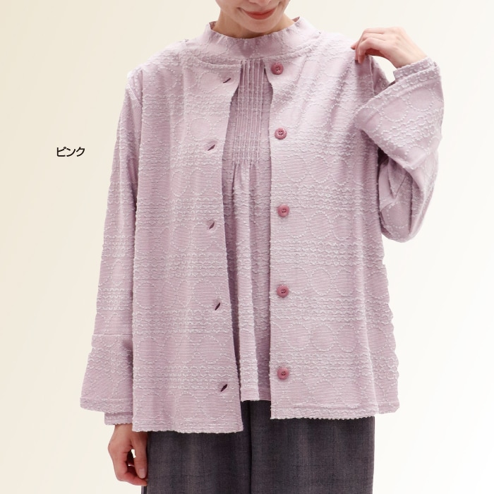 同素材のカーディガンとアンサンブルでのコーデネートが可能。セットで揃えると、様々なシーンで活躍できます。【ジャカード織りで表現されたオリジナルの柄が、上品で優しい印象を与えるカーディガン。】