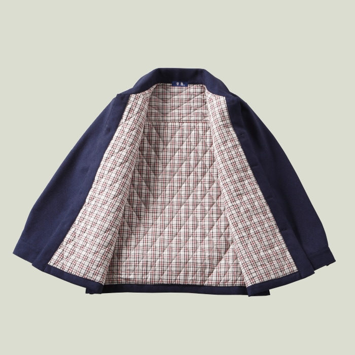 裏地のチェック柄がアクセントの大人のデザインジャケット。