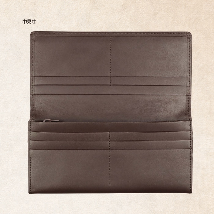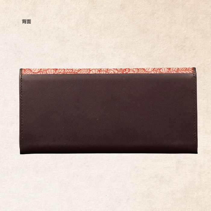 草木染めで染色した鹿革に可愛い牡丹柄の印伝がポイント。お札、カードもたっぷり収納!
