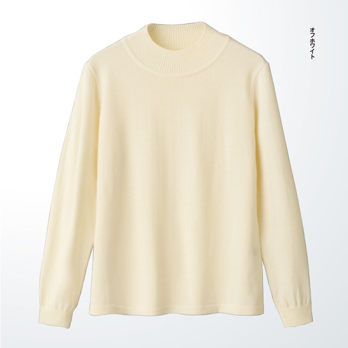 やわらかくて心地良い肌ざわりのウール混プルオーバー。シンプルなデザインで着回しにも重宝する一枚です。