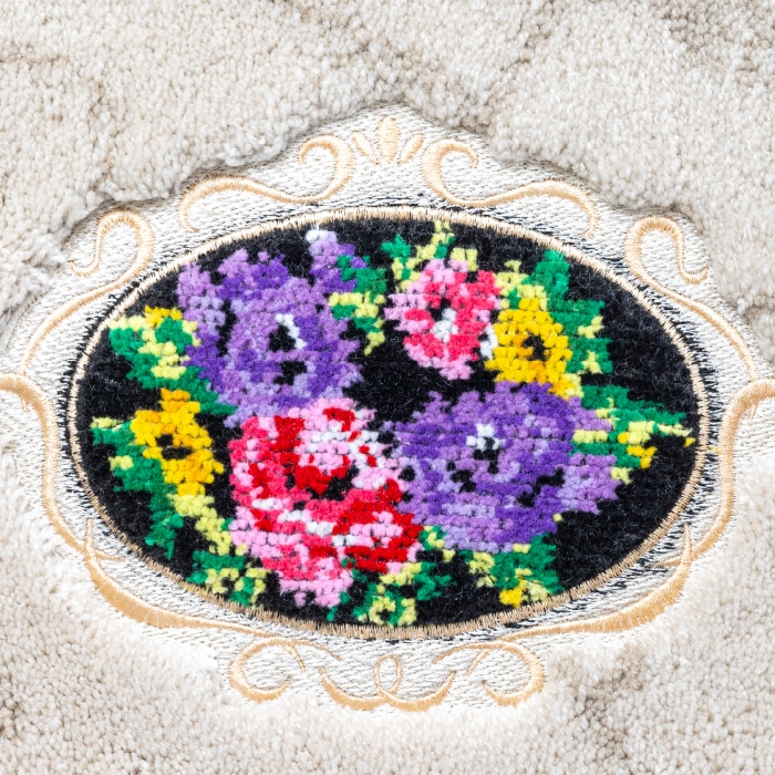 ウィルトン織りの重厚な織りと、シェニール織り(※トイレマット・フタカバーキッチンマット)ワッペンの上品なアクセント