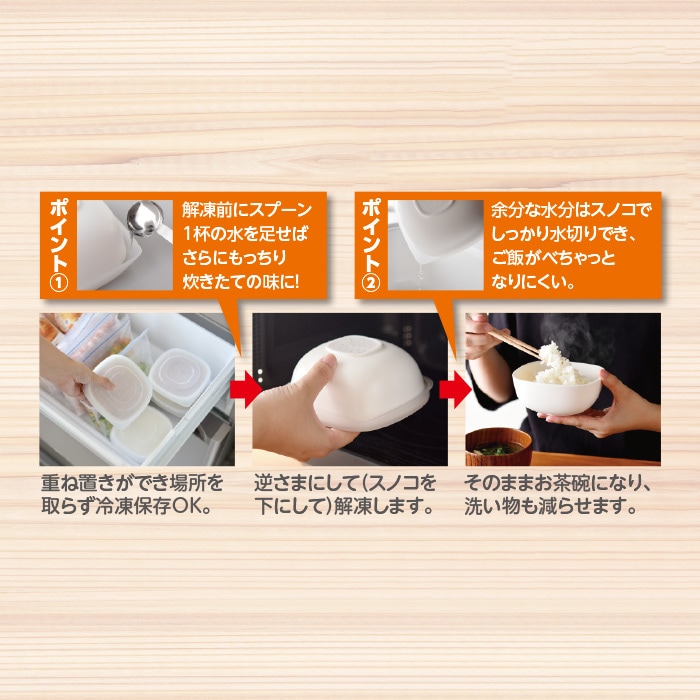 独自の「逆さ置き加熱」で冷凍ご飯をふっくら解凍!そのまま食卓に!