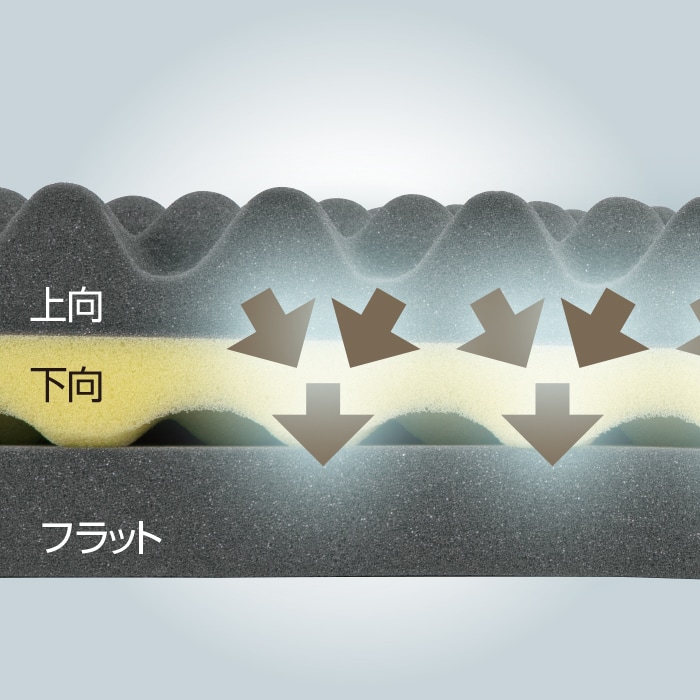 ◎重量:表生地/ポリエステル85%・レーヨン14%・ポリウレタン1%(ニット)、裏生地・マチ部分/ポリエステル100%(メッシュ)、詰めもの/上層部:4部位別(上向きプロファイルカット加工)中層部:(下向きプロファイルカット加工)下層部:フラット