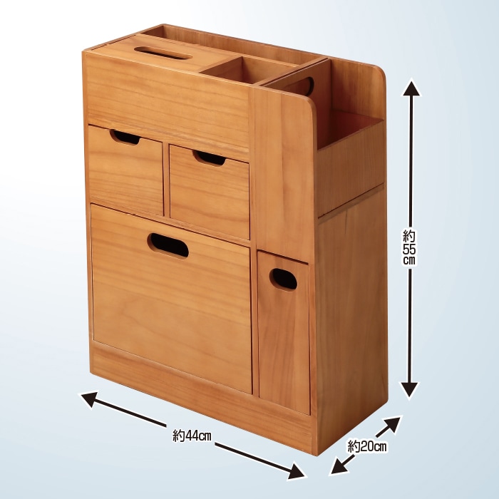 ◎サイズ(約cm):幅44×奥行20×高55 ◎重量:約4.7kg ◎材質:本体/天然木桐材ティッシュ箱蓋/化粧繊維板、仕切り板/中質繊維板 ◎中国製