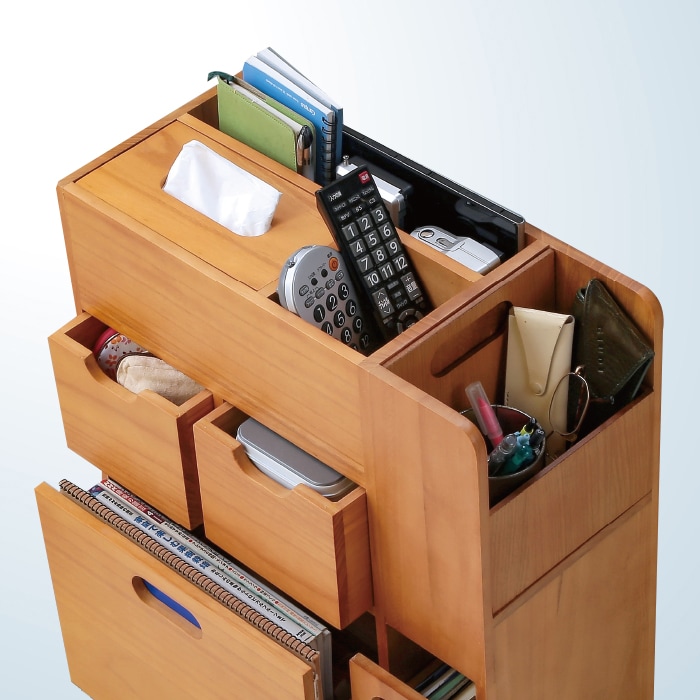 物が散乱しがちなテーブル周りをスッキリ収納して整頓引き出したっぷりワゴン